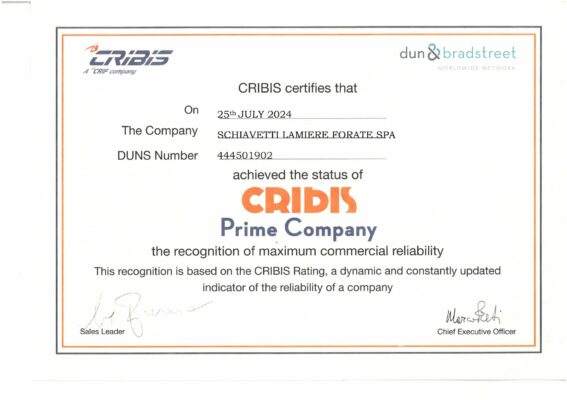Schiavetti Lamiere forate S.p.A. is proud to present this award received by CRIBIS.